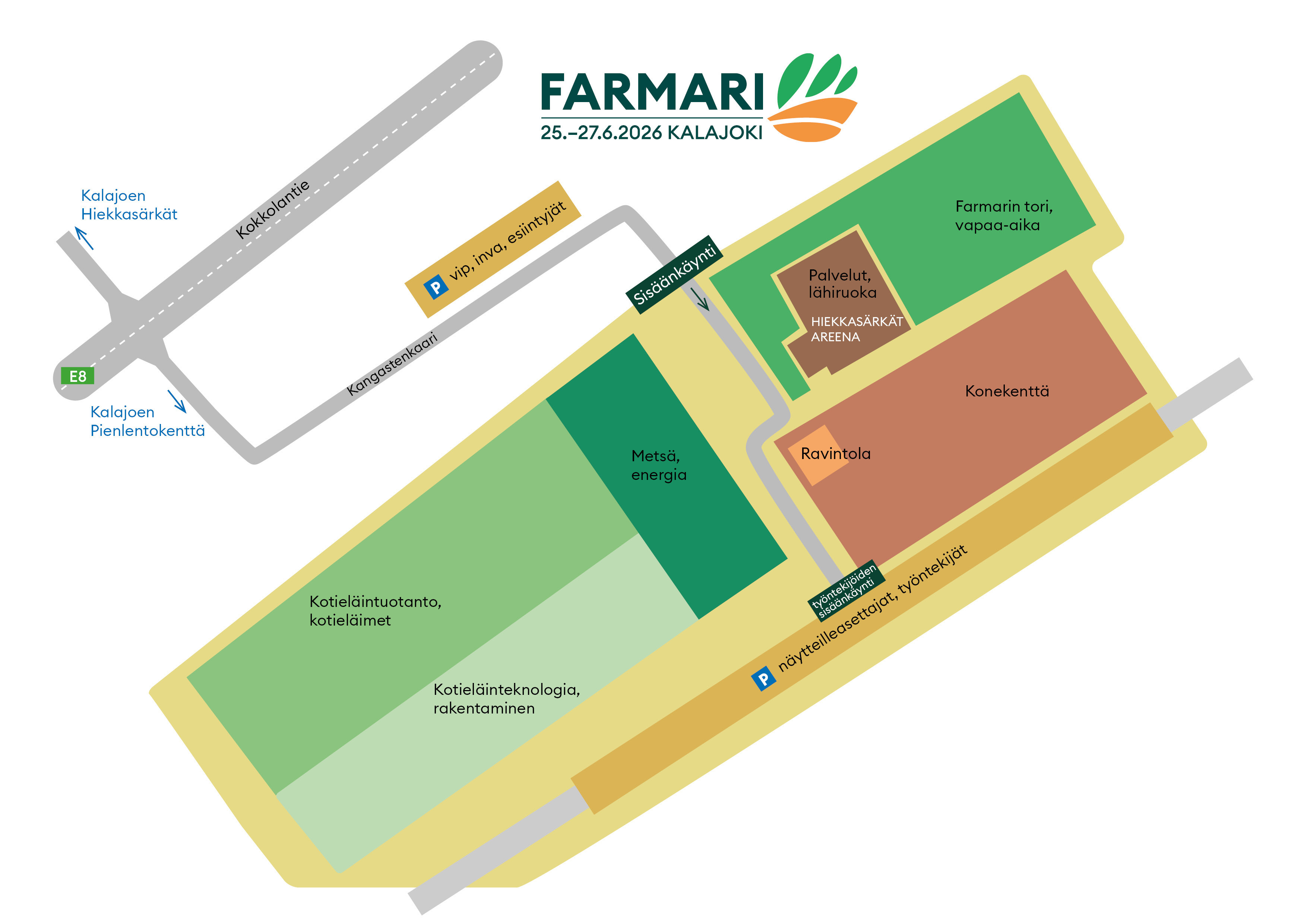 Farmarin monipuolisella näyttelyalueella on esillä kotieläintuotanto eläimineen, huippuluokan konekenttä koneineen ja laitteineen, metsä- ja energia-alan teemat ja koneet sekä runsas kattaus sisä- ja ulko-osastoja.